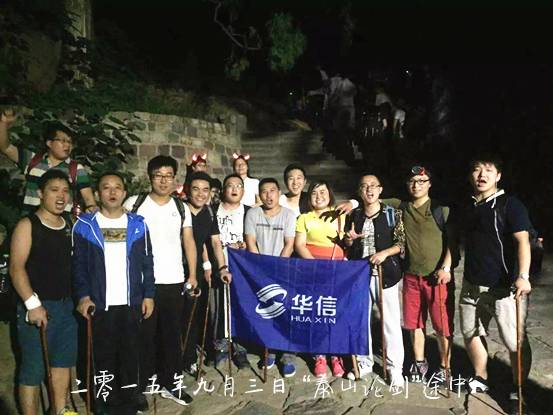 为提高团队凝聚力及工作热情,开阔领导班子眼界,创世华信于胜利日小长假组织公司高层领导赴泰安市泰山风景区进行游览,北京分公司及上海分公司的部分高层领导参加了此次团建活动。 9月3日下午,北京分公司团队到达泰安市高铁站,旅行的轻松与快乐围绕着参与本次活动的每一位同事,美好的假期此刻刚刚开始。 傍晚时分,上海团队赶到活动预定的酒店与北京团队汇合,两个团队合二为一,化身“创世华信泰山论剑”小分队,并在酒店进行了团建前会餐。餐会上气氛和谐融洽、轻松愉悦。至此,本次创世华信“泰山论剑”活动正式启动。 因为是小长假,泰山风景区人头攒动,即便是夜晚时分也显得格外热闹。同事们准备好随身物品以及登山杖,开始长达6小时的登顶活动。 同事们互相鼓励,向着山顶迸发。